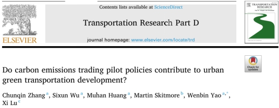 2025年3月,张春勤团队在国际知名期刊《Transportation Research Part D: Transport and Environment》上发表题为“Do carbon emissions trading pilot policies contribute to urban green transportation development?”的文章。该成果第一作者为张春勤副教授,讲师姚文彬为论文的通讯作者,体育博彩平台-十大线上体育投注博彩平台