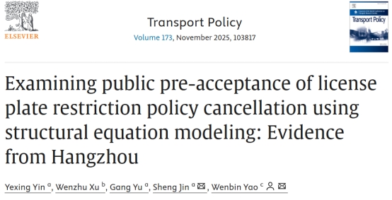 2025年9月,张春勤团队在国际知名期刊《Transport Policy》上发表题为“Examining public pre-acceptance of license plate restriction policy cancellation using structural equation modeling: Evidence from Hangzhou”的文章。该成果通讯作者为十大线上体育投注博彩平台